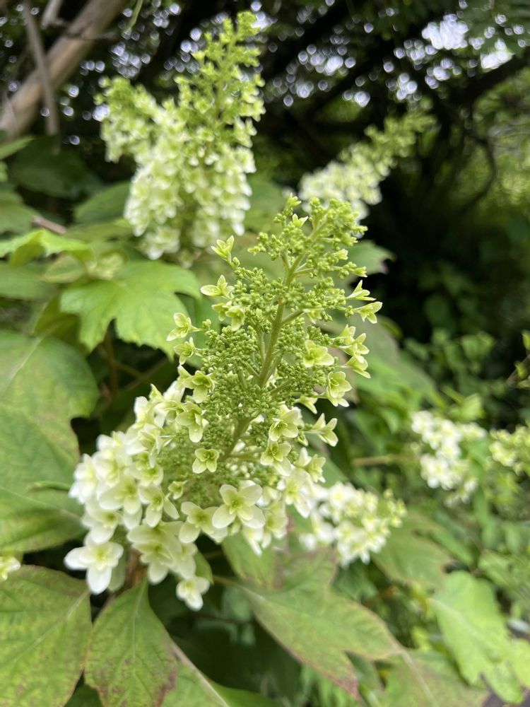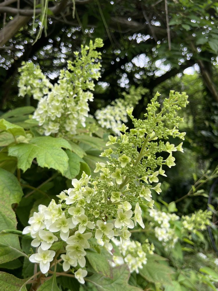 我が家の花畑で、柏葉紫陽花が咲き始めました