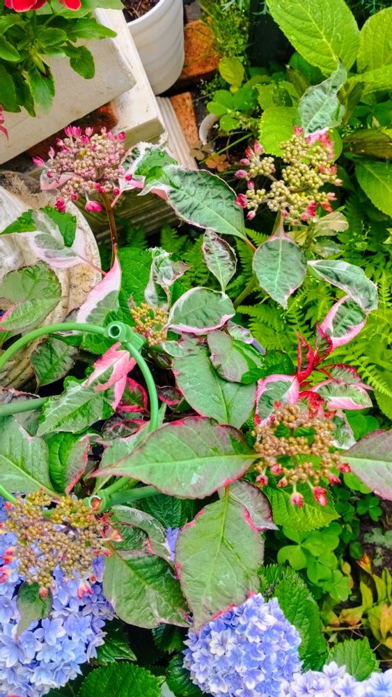 去年の春、横浜イングリッシュガーデンで小さい苗で購入したのが1年で大きくなりピンクの斑入りの葉が美しく花が無い時期も楽しめて素敵な紫陽花です🥰