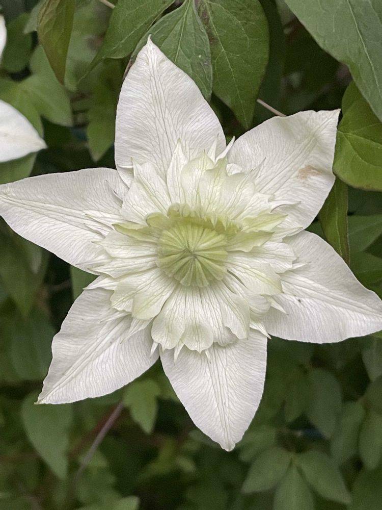 白の八重のクレマチスは、清楚だけど、華やかでいいよね〜💕💕