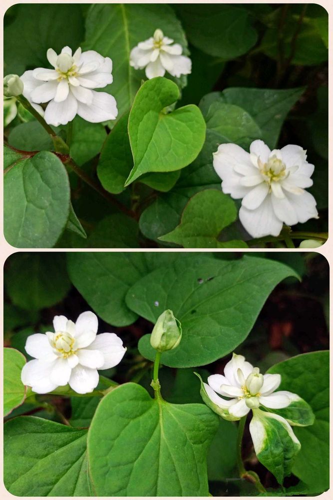 ✤🍀花友さんから頂いた八重咲きのドクダミ。鉢植えからはみ出し地面から🌱🤭