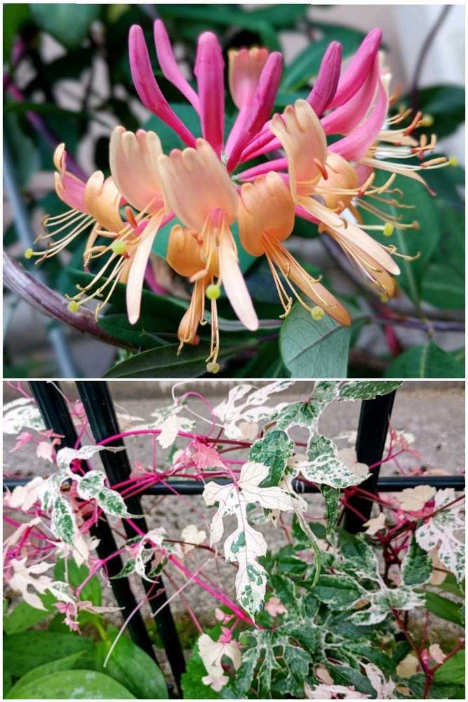 ✤スイカズラの足元で、斑入り葉の🌿野葡萄の新芽、新葉も可愛い♡