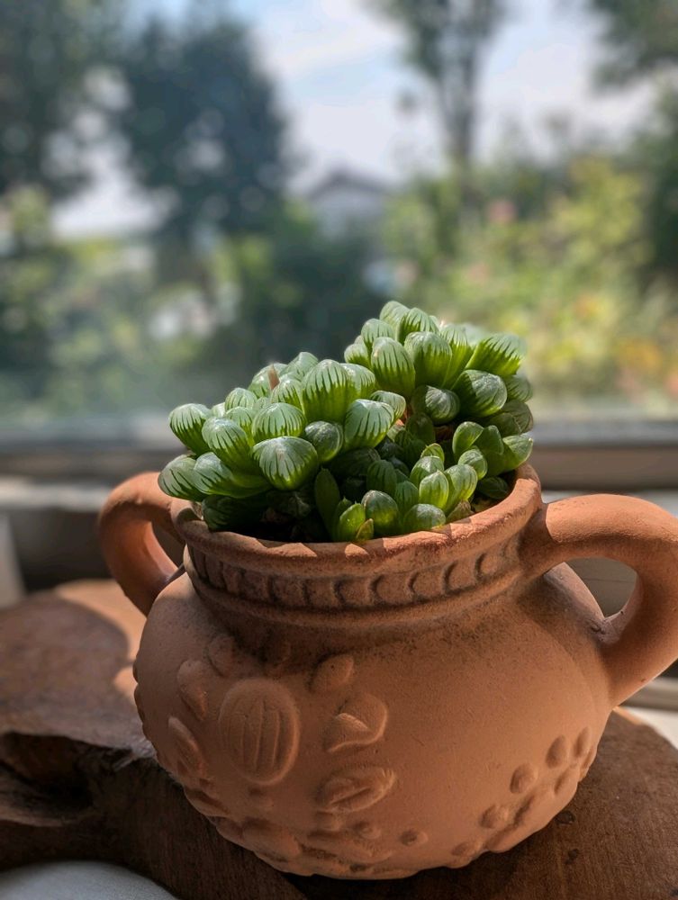 可愛い器に入ったハオルチア〜と、思って見てたら、なんとタイ🇹🇭のモノ〜良い思い出の品で植物を育てられるのも素敵だね〜🥰✨