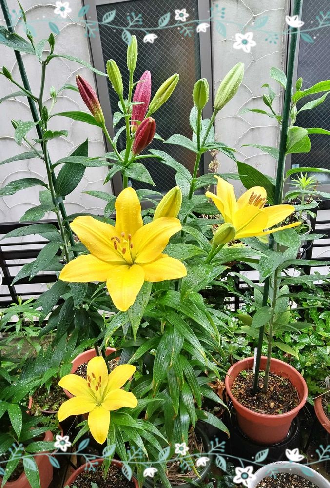 今朝、すかしゆり💛💛2輪が咲き、鮮やかな3輪の花達がとても綺麗です😍🤩🤗💕💕