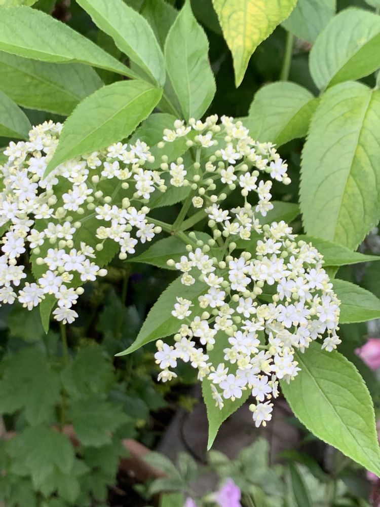 昨年植えた西洋ニワトコすごい勢いで成長し、花がつきました