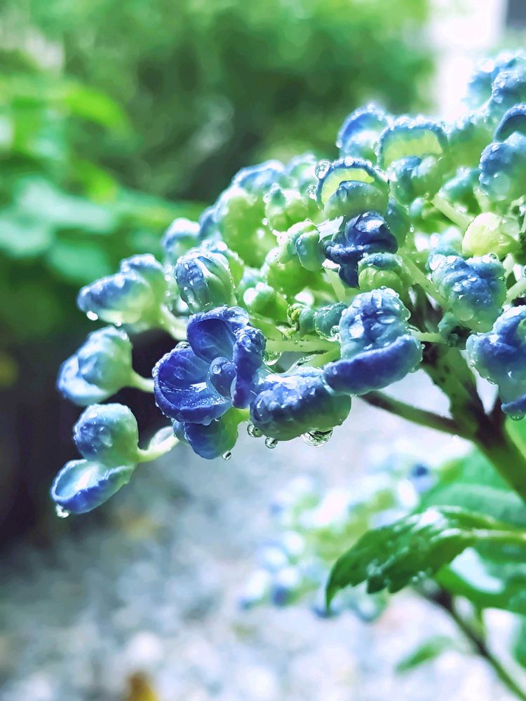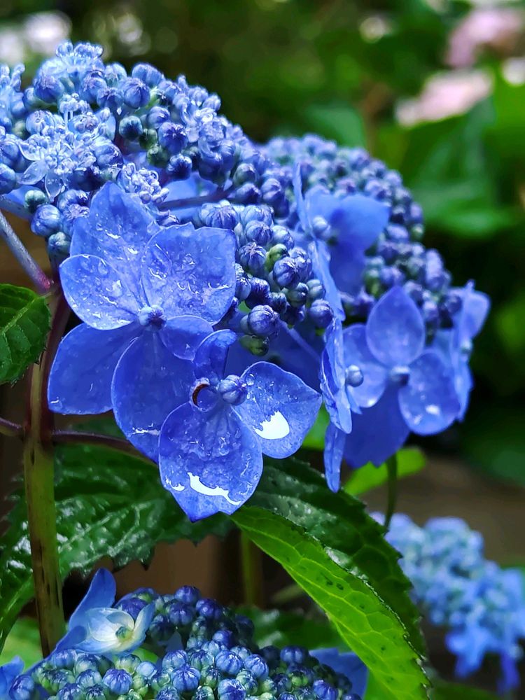 ②ヤマアジサイ藍姫は雨の中でしっとりとますます美しく
