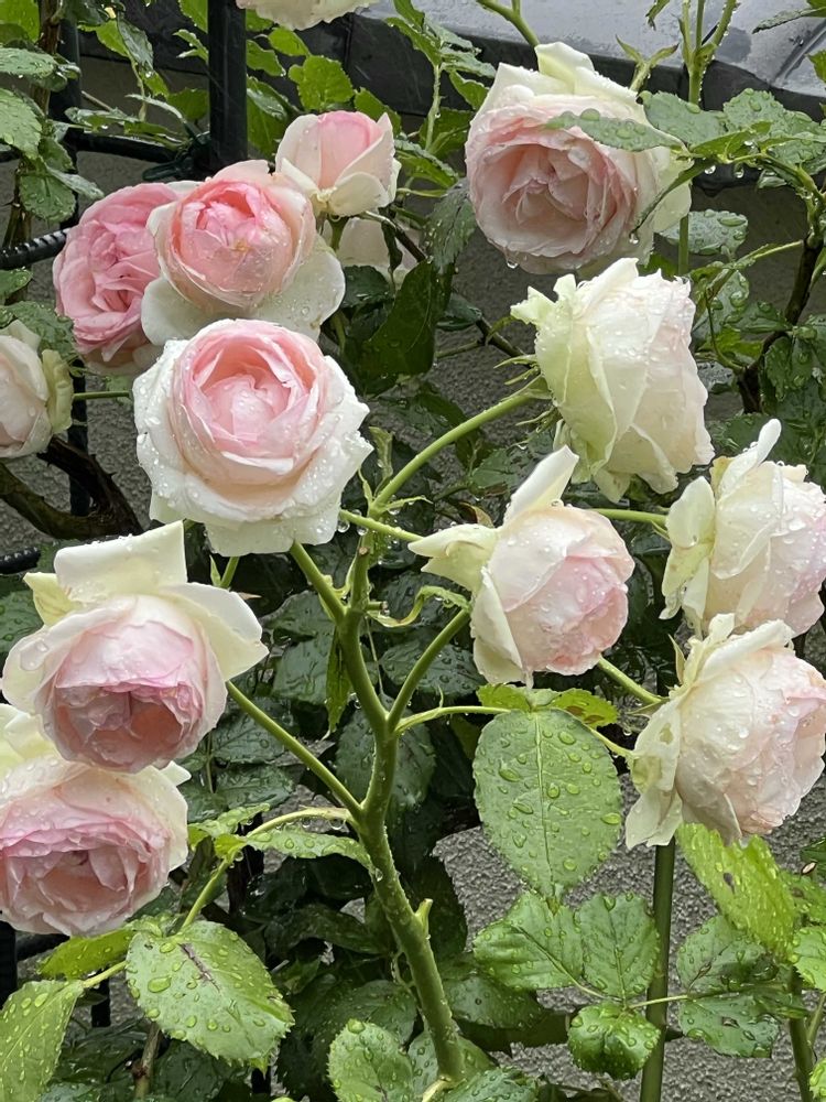 雨のお庭 ピエールさん、ラベンダーさん、アナベルさん みんな雨に打たれて可愛そう(。•́︿•̀。)