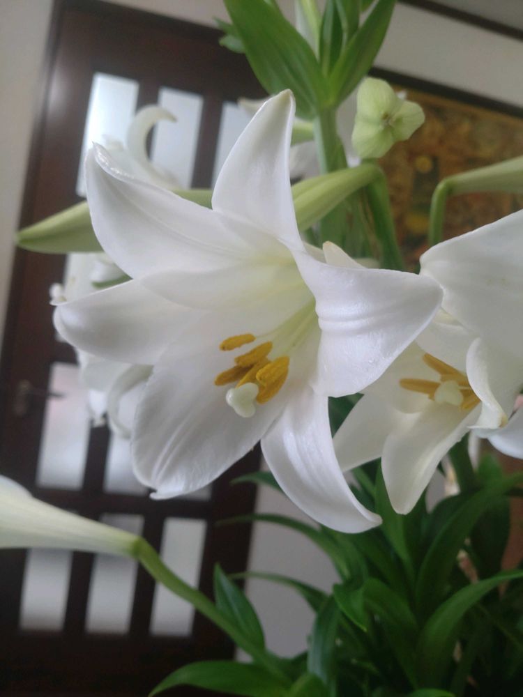 日曜日に1輪だけ咲いたので、咲く前にお友達や隣の方達にお裾分けして……我が家も5本花瓶に入れていたらもう次の朝には、開花がはじまり、あっと言う間に何本も咲き始めました!