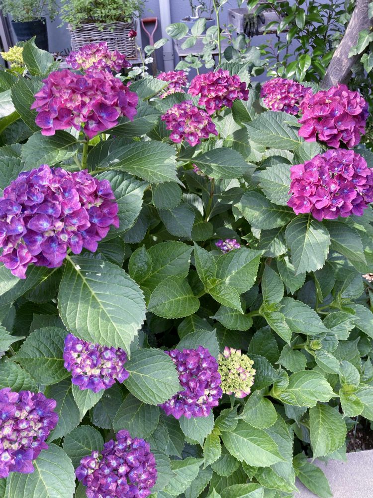 青紫の推定💦50年の紫陽花や色の変化のあるアンティークアジサイは7年目昨年は猛暑で殆ど傷んでしまいました。