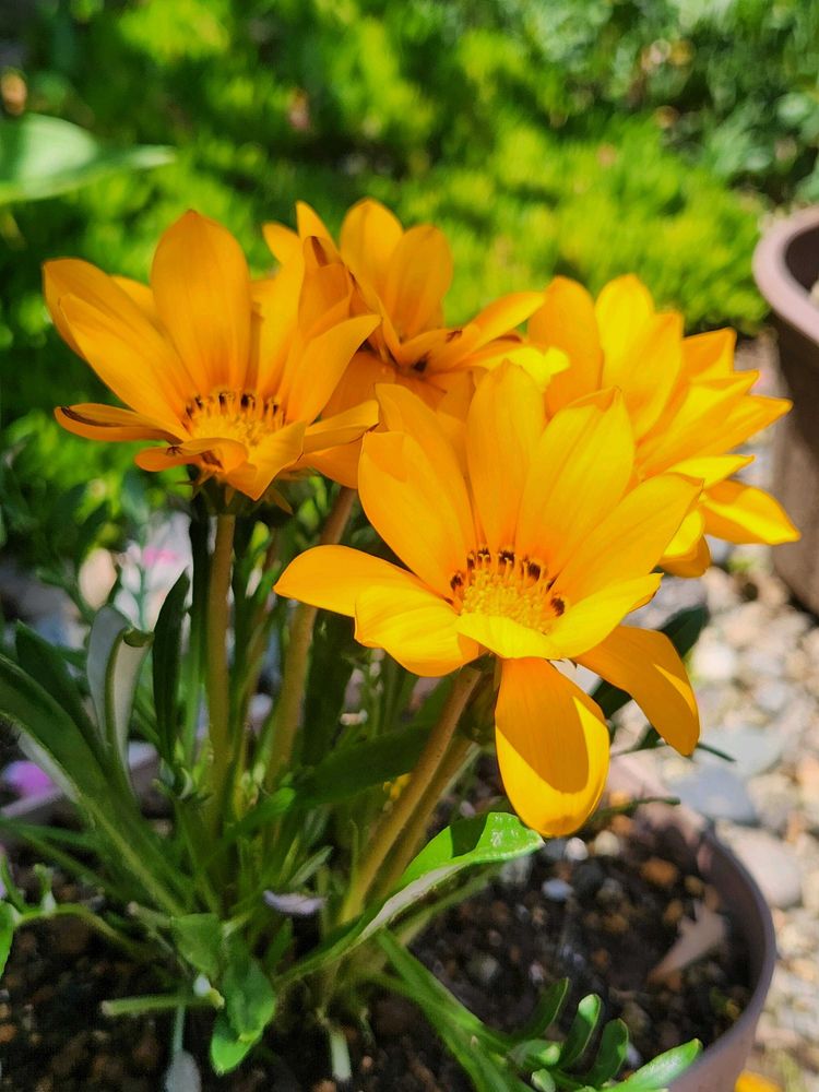 昨日の画像ですが 庭に出てみると いきなり沢山の🟡黄色のガザニアが咲いていて 驚かされたような…挨拶されたような…😱💕💕💕