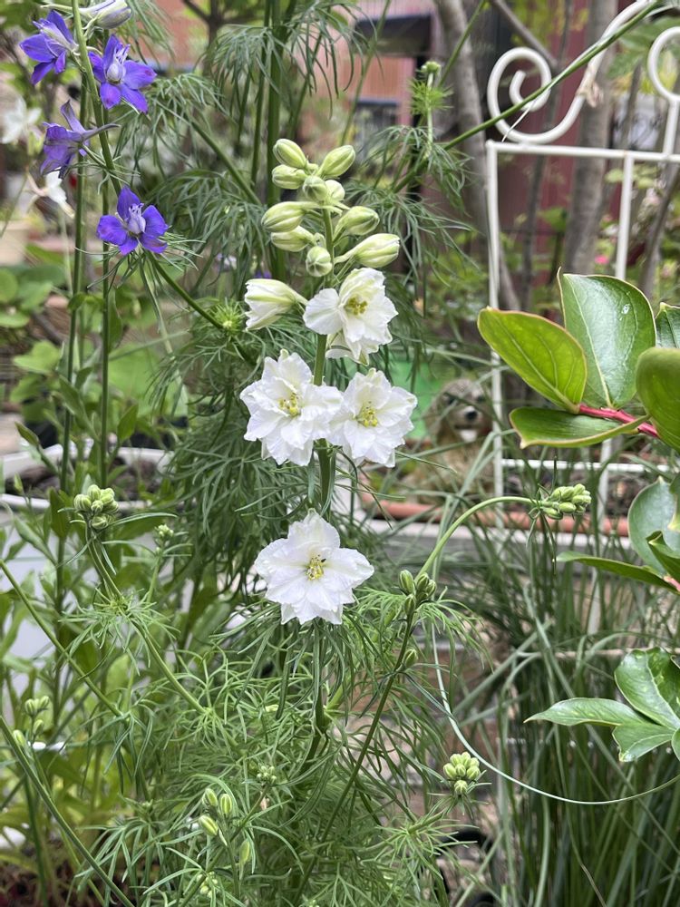 色ミックスの種を蒔いて白は1つだけでした😅咲いてくれて嬉しいです🤗