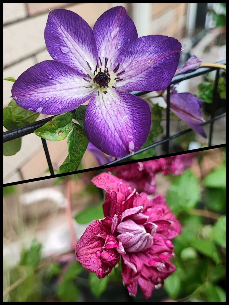 クレマチス ベノサ バイオラシア&パープレア プレナ エレガンスがキレイに咲いてます。どちらも4月に春日井園芸センターさんで注文して取り寄せたもの。買って1年目でしっかりたくさん咲いてくれてびっくりです。お値段お安めの多花性の品種ばかり購入したのですが、既にほぼ全ての品種が咲きました。すごい。