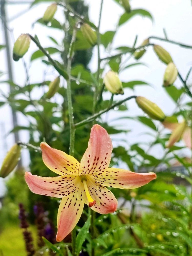 シャンデリアリリー コサージュ咲いてきました。華奢だけど意外と丈夫で去年もしっかり咲いてくれて、今年は更にしっかり育って蕾の数が増えました。色はちょっと地味だしお花もユリにしては大きくないのであまり目立たないですが、早咲きで他のユリより早くしかも長く咲くので、ちゃんと気付けます()