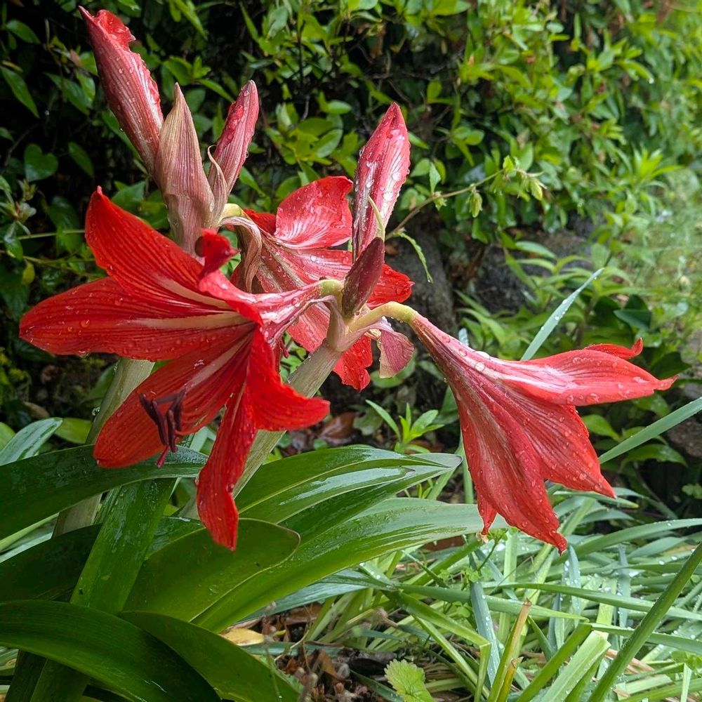 ①アマリリスが椿の下で咲いてきました❤️❤️❤️