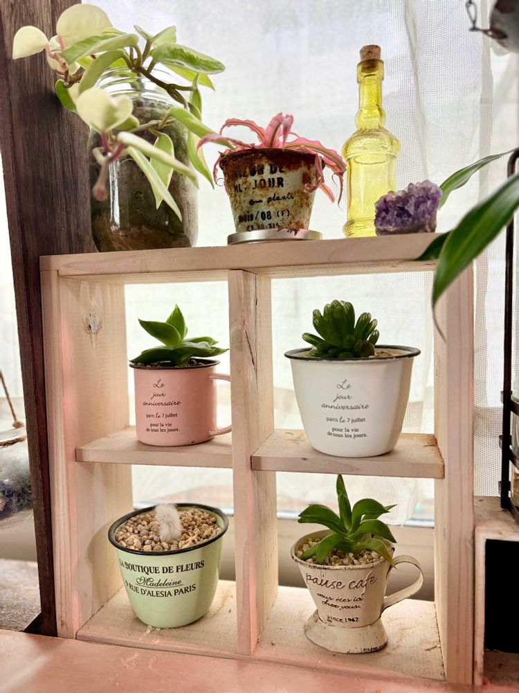 どれも徒長してますが、1年てことはなく、うろ覚えですが2年以上はたっていると思うので、徒長覚悟でインテリアとして使う分には長く楽しめるのでアリですね。