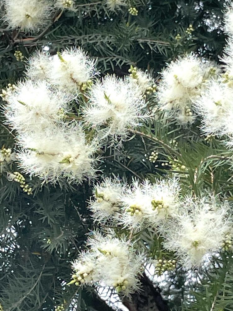 ティーツリーってこういうお花なんですね。化粧品でニキビ予防?とかで名前だけは知っていましたが😅 真っ白になった木を見てみたいです😊