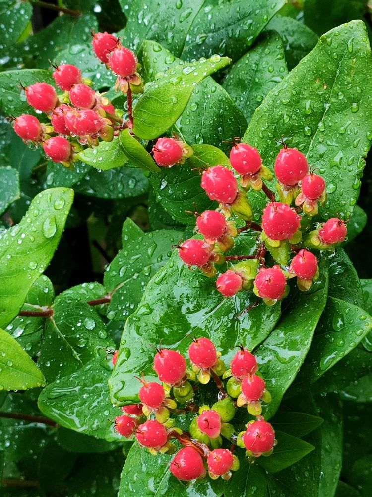 こんな日はヒペリカムの赤い実🔴が目を引きます🌟