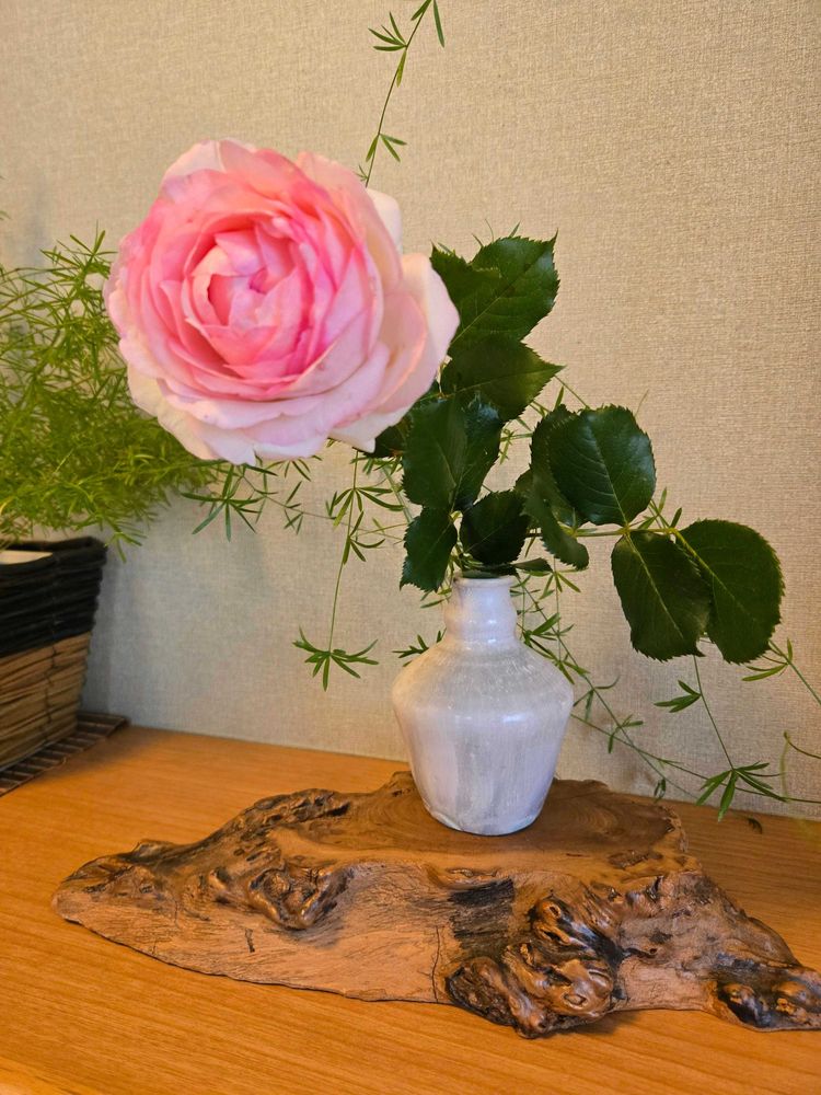 職場の友人の薔薇好きのお母さんが育てた薔薇を1輪頂きました😃