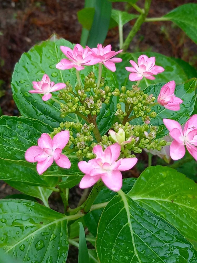 あめのなか それぞれのお花さんが健気に咲いてくれて