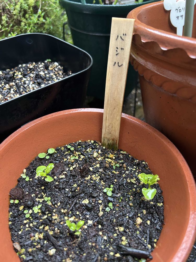 ②こちらは普通に土に蒔いてたバジル…発芽率も悪いし育ちもイマイチ