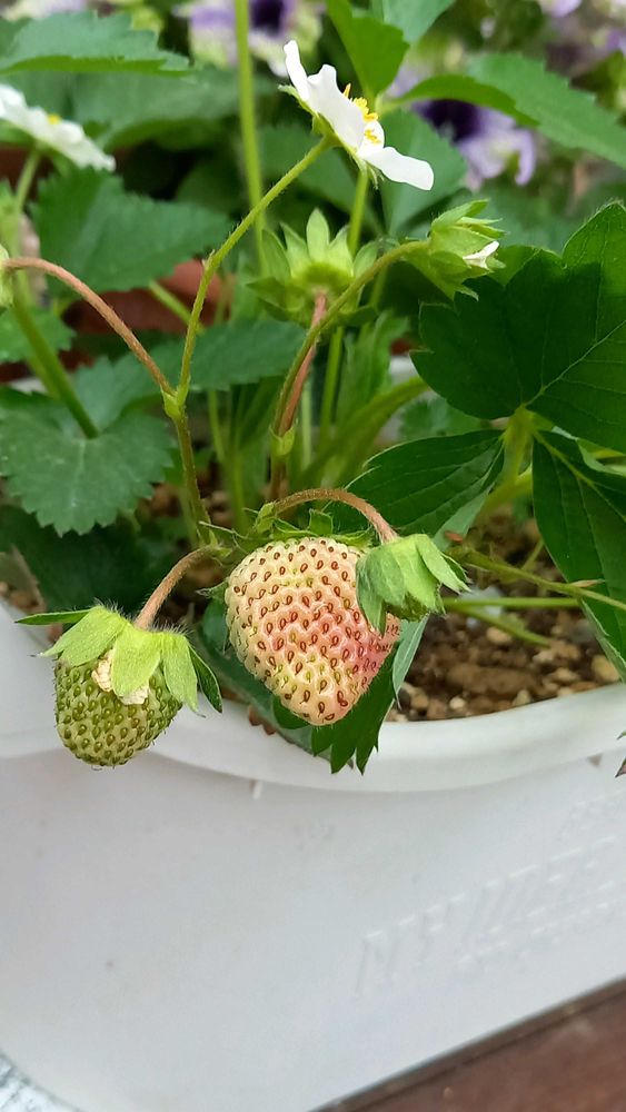 今までに6個ほど収穫🤭孫ちゃんのお口に消えました🍓👦😋