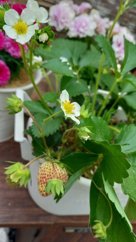 イチゴ🍓苗、植えた事はあるけど葉ばかりで、それとツルも伸びて、お花は全然付かなかった🤭