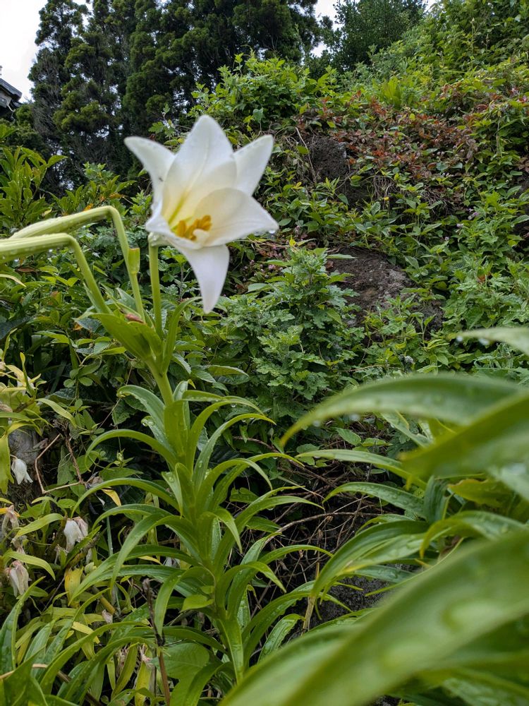 白ユリ、これから沢山咲きます。でも、虫に蕾が食べられてます。😭😥
