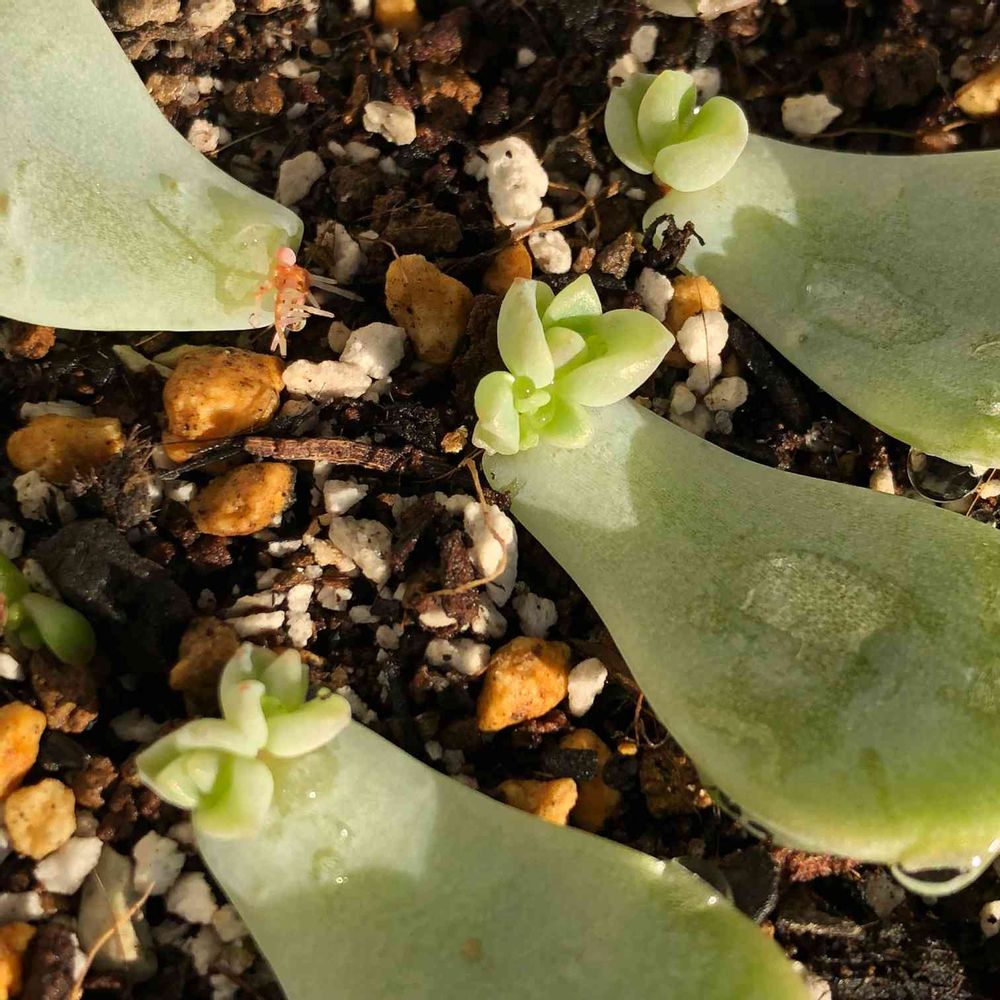 今日葉挿しトレーを眺めていたら、全く発芽の予感のなかった魅惑の月に根っこらしきものが!?