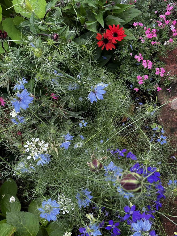 初夏の花壇、青と細い葉が清涼感ありますね😊爽やか〜✨
