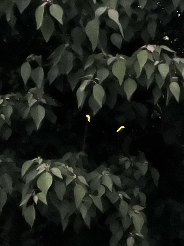 私はスマホで上手なホタルの写し方を知らないため随分雑な写真ですが、ホタルの光だけは届けられるかな