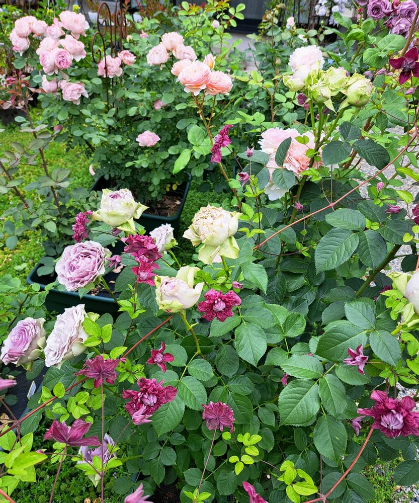 ⑤周りのバラに絡む「パープレアプレナエレガンス」💜