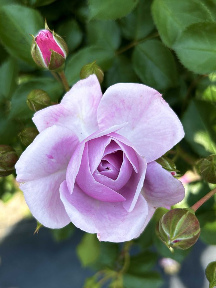 最後のバラは、藤色みたいな不思議な色、いいですね。