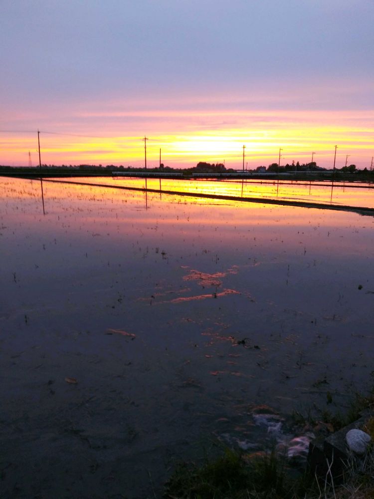 ⑤5/26の田植前の水鏡の田んぼと夕やけ空🌇✨