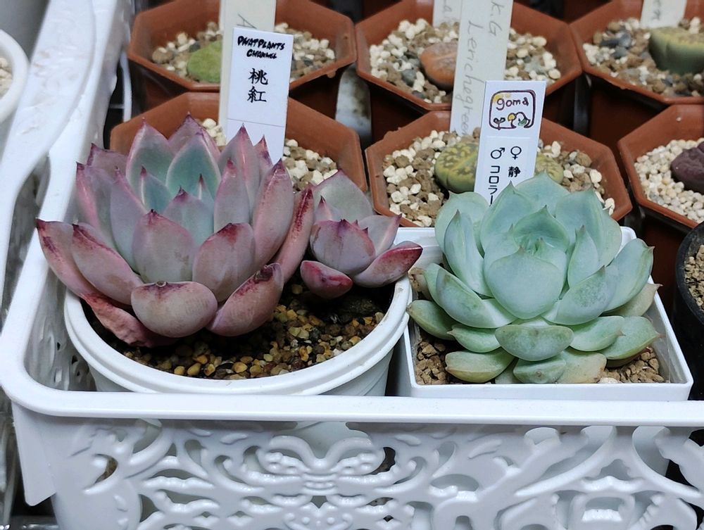 先月開催された妙高多肉市場Vol.8で購入した桃紅と♂コロラータ アテマハック×♀静夜(旧タイプ)