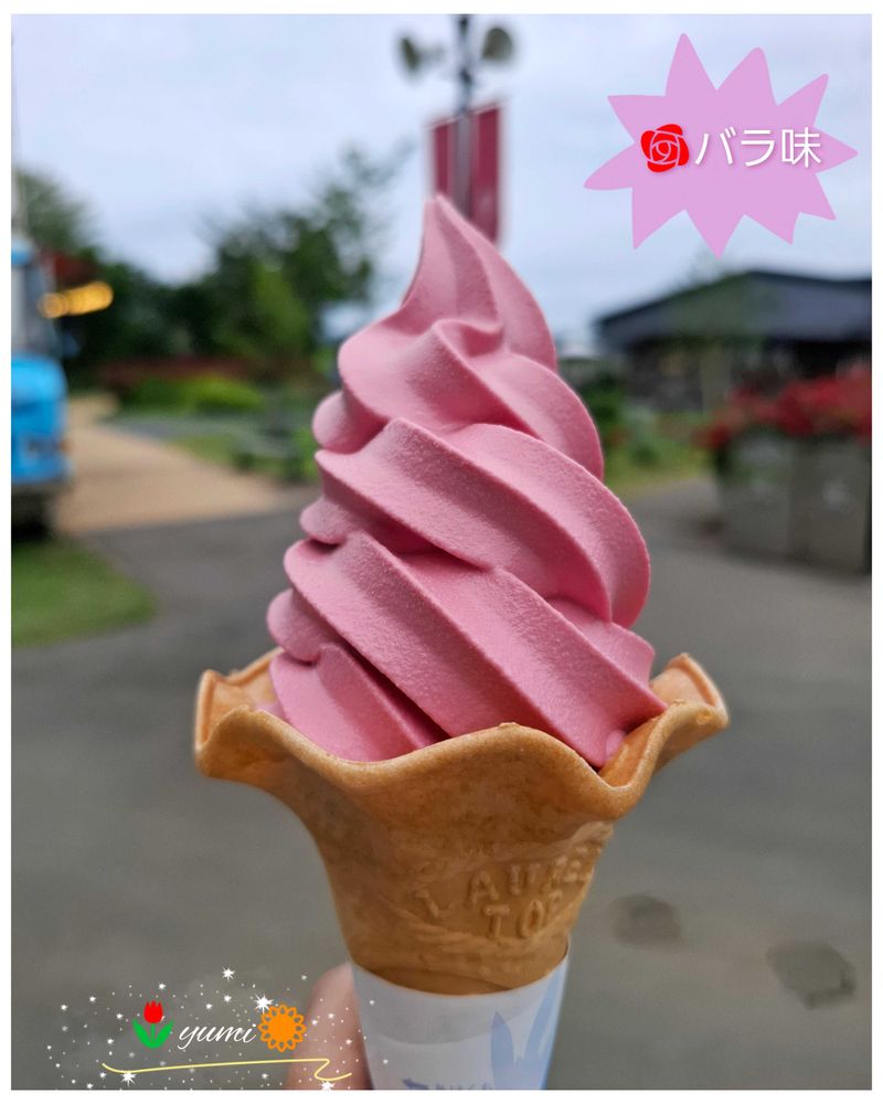薔薇の🍦、こっちのローズガーデンのより色が濃い‼️味はどうだった⁉️香りも良さそう😄