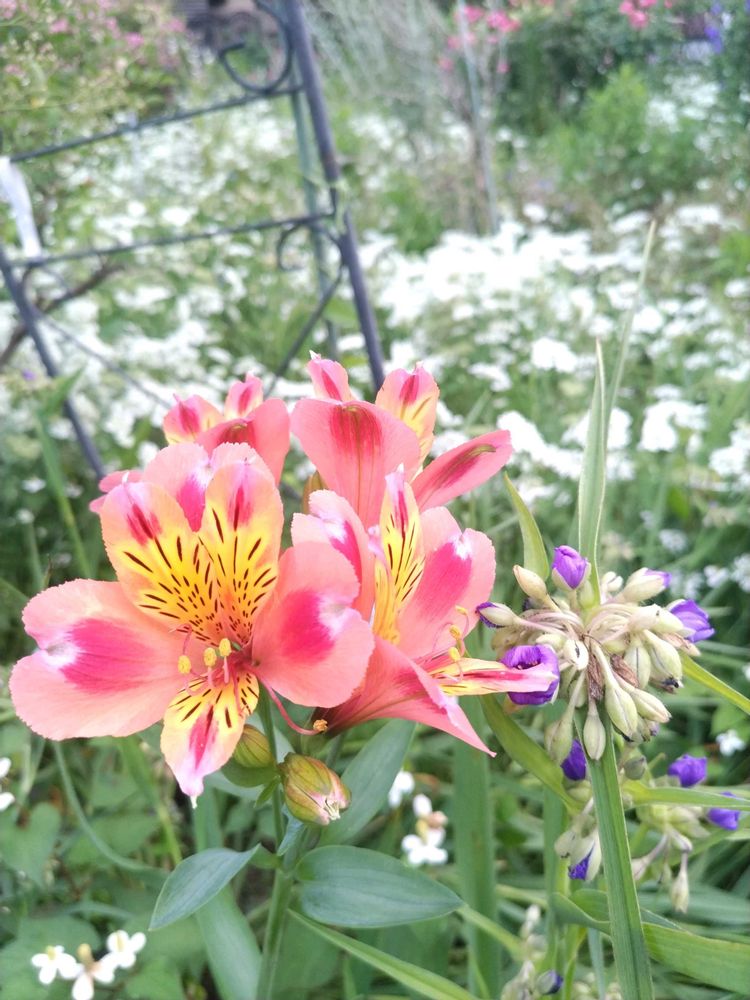 アルストロメリアとムラサキツユクサが映えています