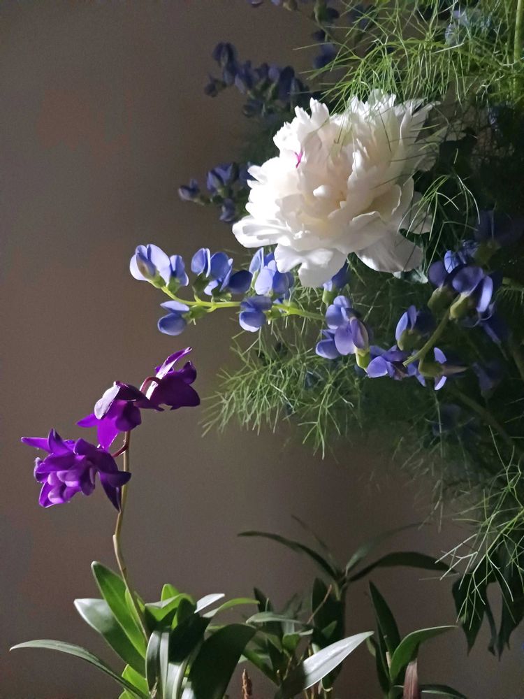 あ、キンギ咲いたな~と思って部屋に入れたらそこに芍薬が居てくれた、の図。😆