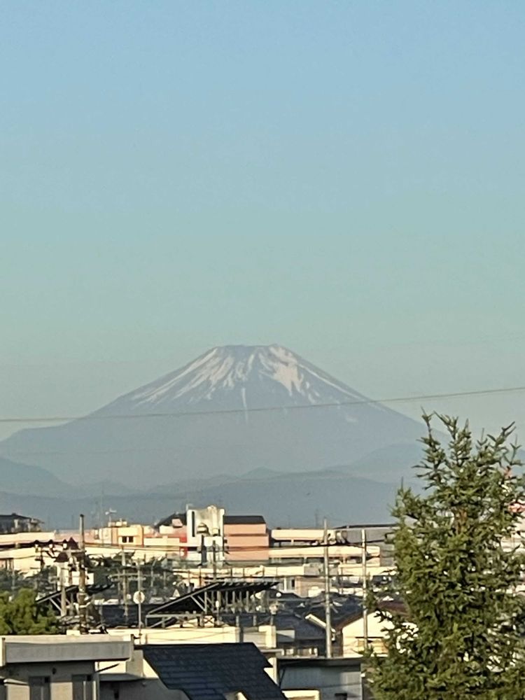 会えるかなっと思って出勤前に実家の屋上に上がってみました。クッキリでは無いけれど、残雪をまとった富士山に会えました。