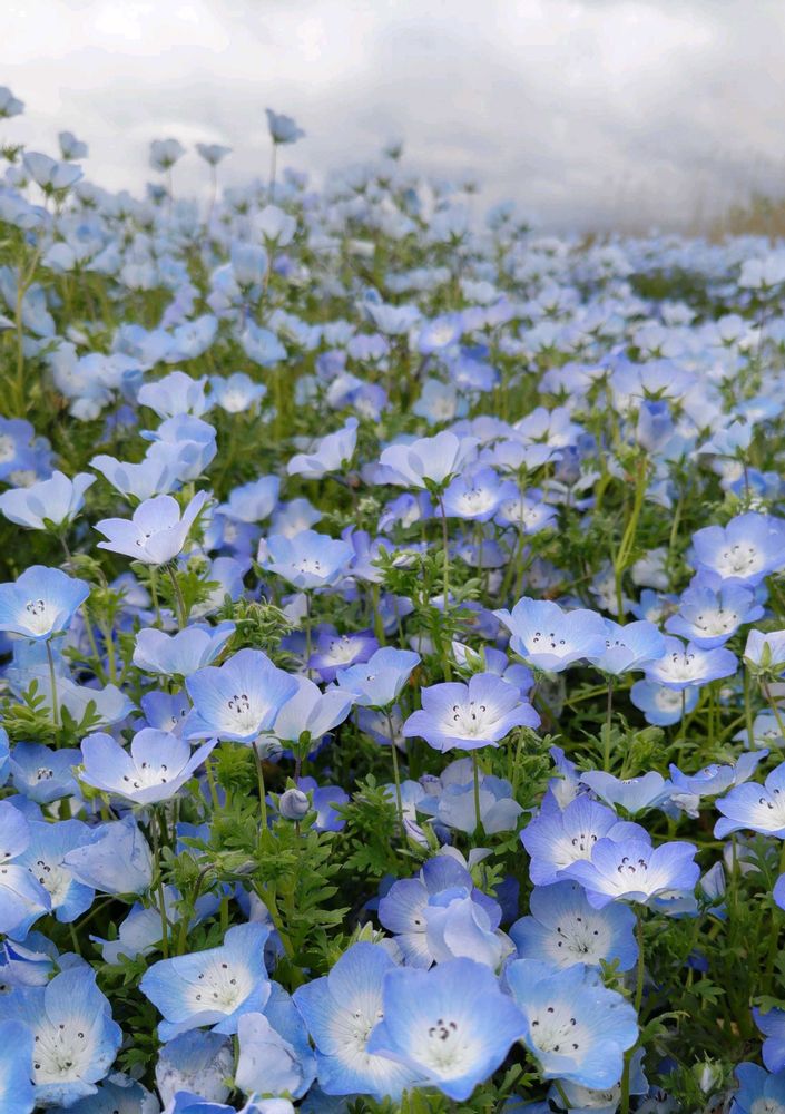 5月26日すずらんの里の帰りに寄った河口湖大石公園、曇りで富士山が見えなくて残念、、、ネモヒィラの奥に富士山が見えるはずでした🩵🩵🩵✨🗻