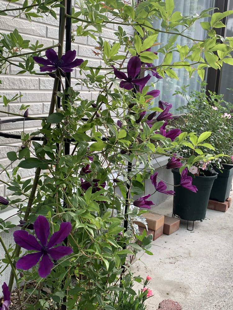 クレマチスのアフロディーテエレガフミナが沢山咲き出しました〜☺️
