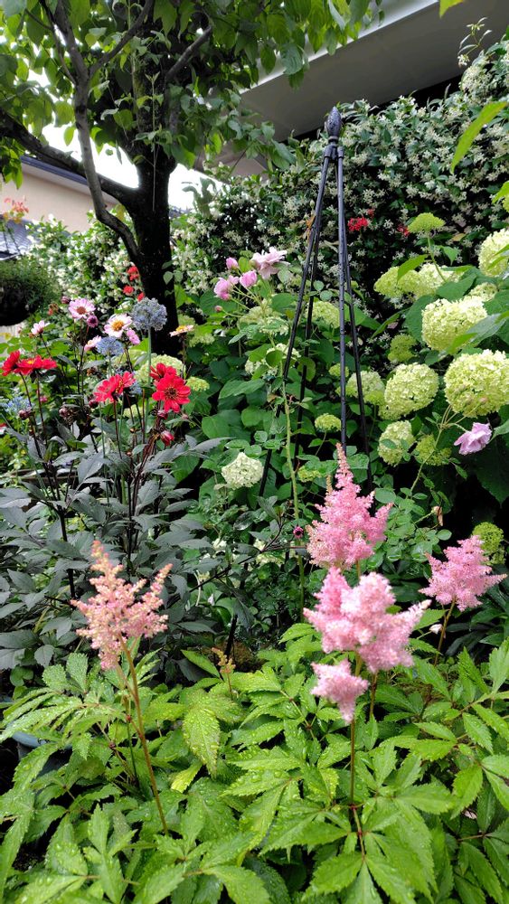 冬はクリローだらけの植え込みが、今は宿根草とアナベルの植え込みに😂