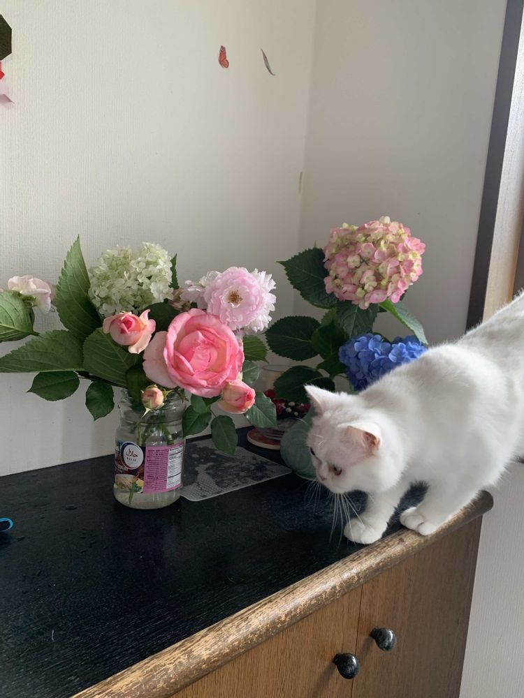 ばら&あじさい、季節の花と猫ちゃん❣️
