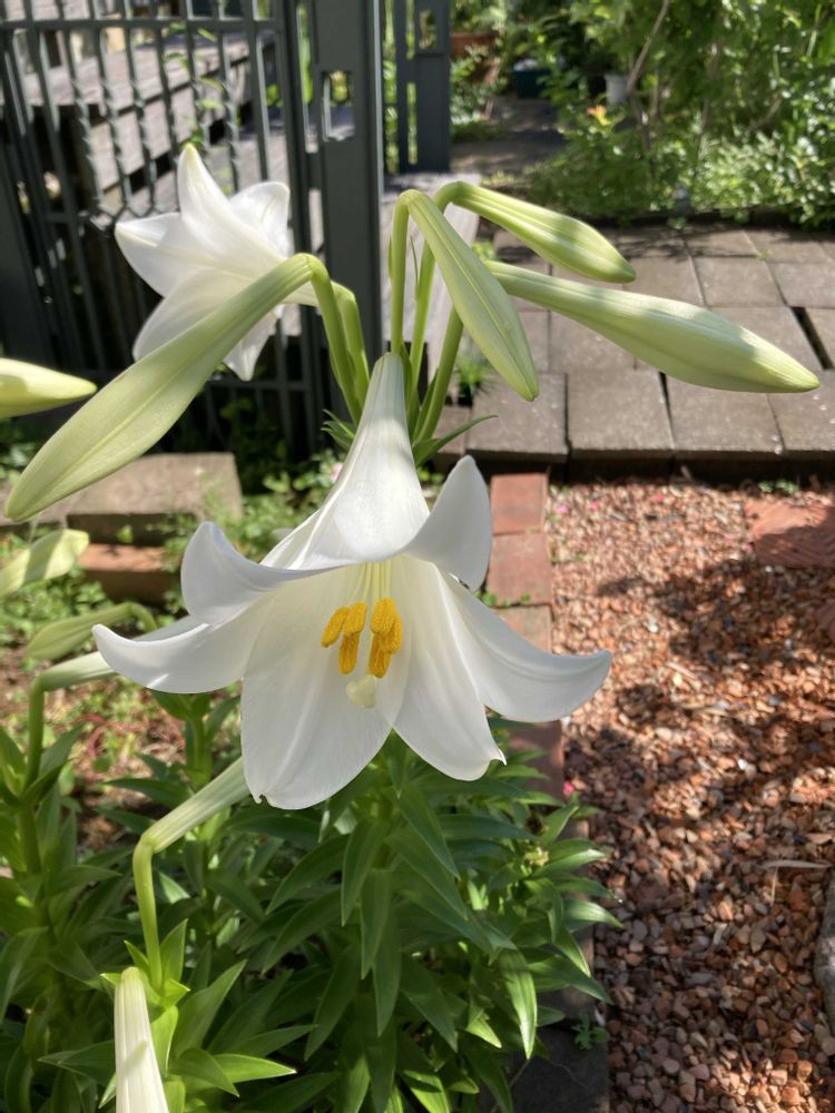 テッポウユリ(鉄砲百合),今日の庭から,ヒューケラの小さな花の投稿画像