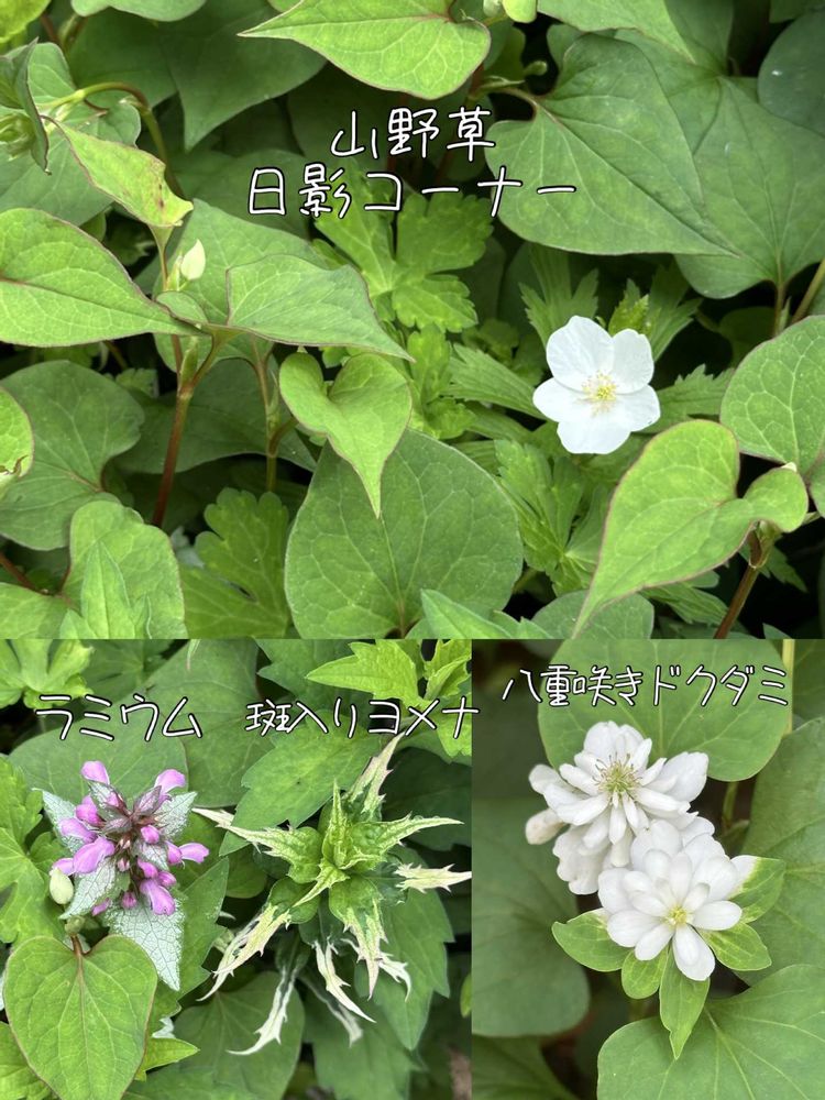 夏の避暑地?😄八重咲きドクダミ、ラミウム、斑入りヨメナ混み合ってます🤭