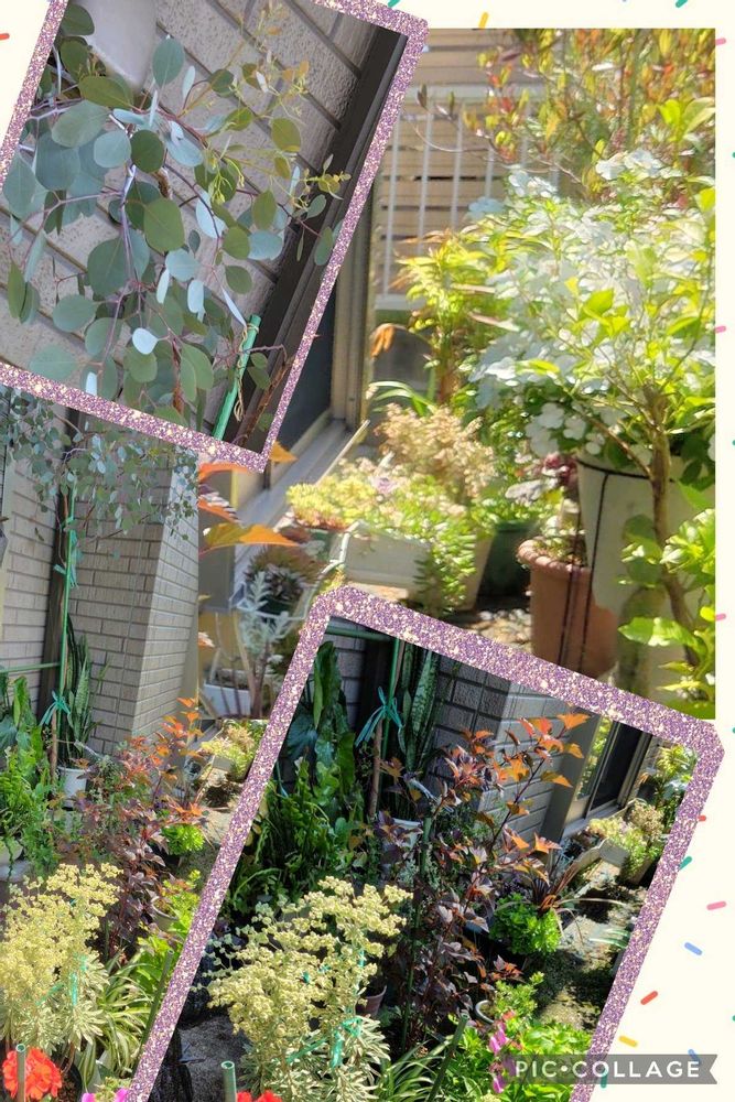 投稿したくて📷。うち、ひょろ長姿なんです。こんなですが、若葉は出てきてますよ。(左上アップ📷)