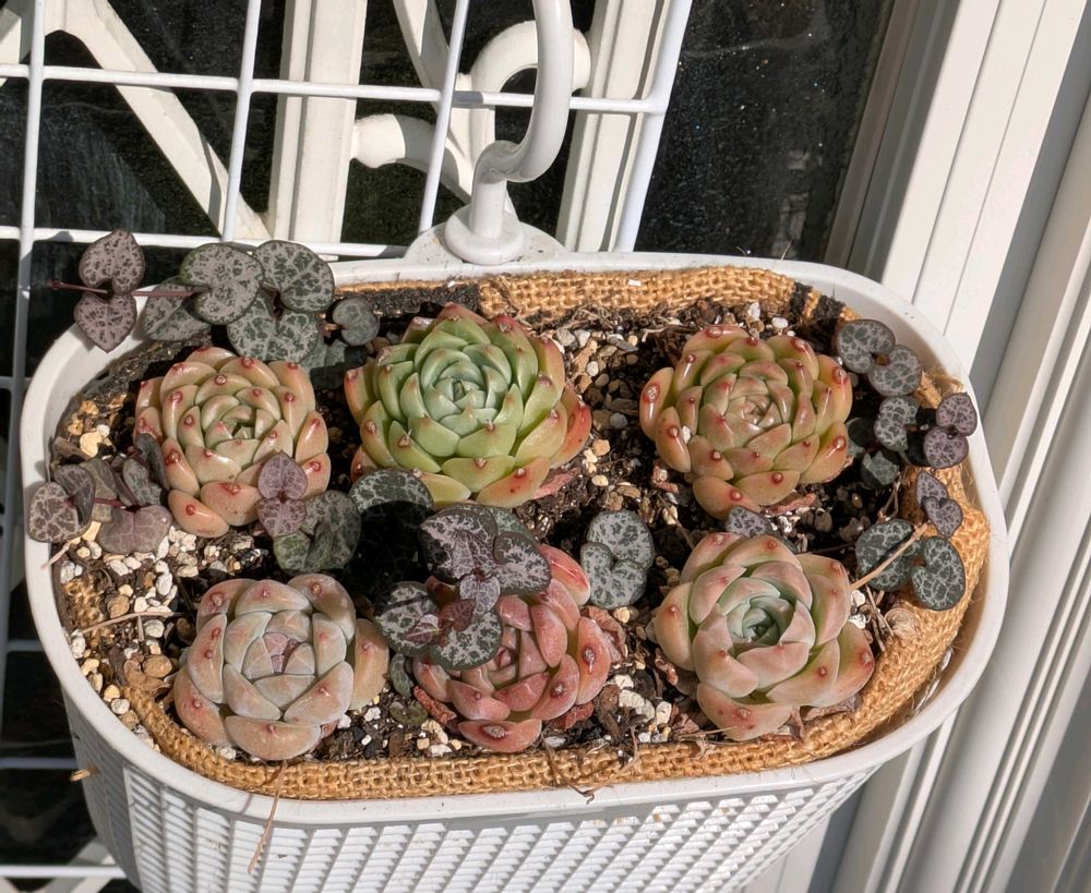 多肉のすき間からハートカズラがニョキニョキと😍🎶🎶