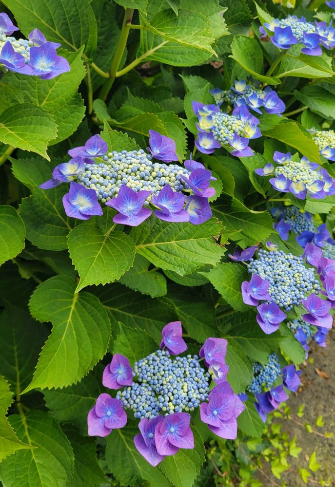 鮮やかな紫色のガクアジサイ