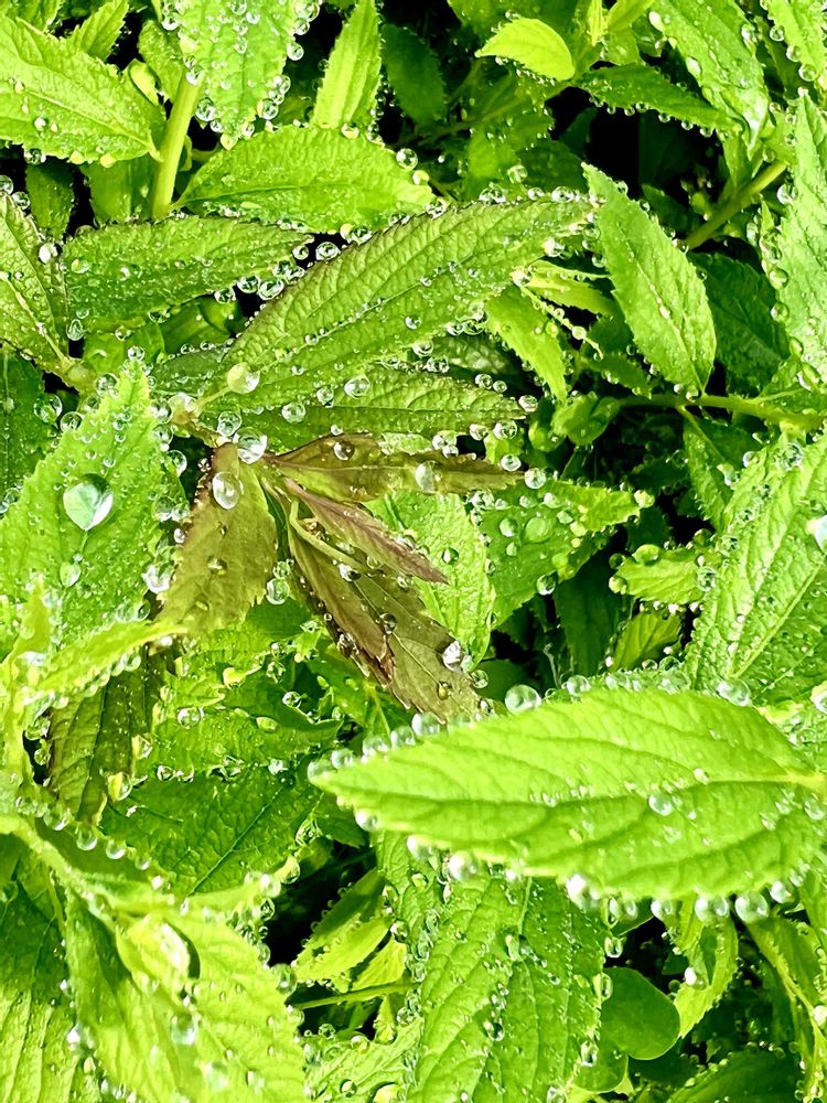 雨粒が葉っぱの縁に、綺麗に並んで付くんですね〜