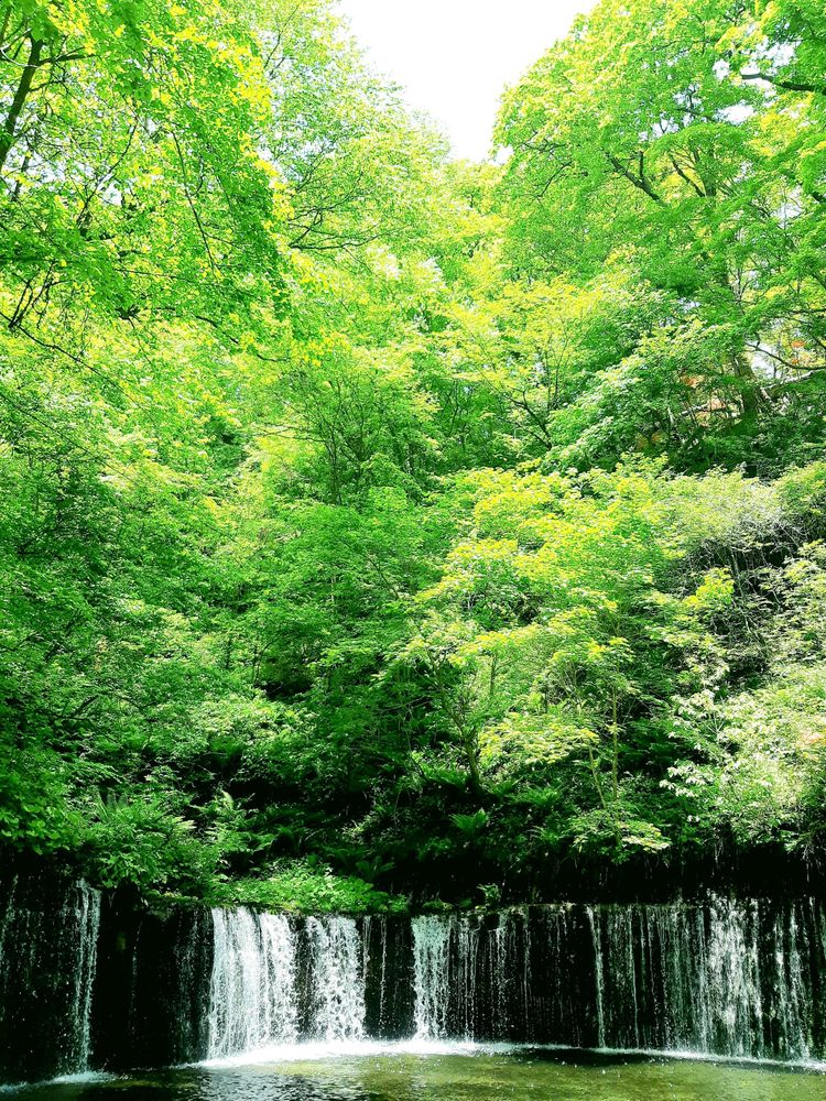 白糸の滝周辺、光が射し込んで緑も水も煌めいていました✨