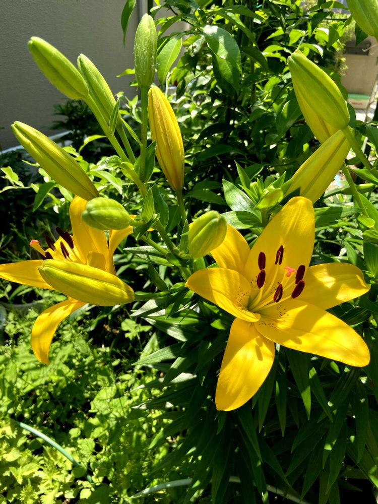 昨日見た時はまだ蕾やったのに今朝百合さんの第一号が開いた💛