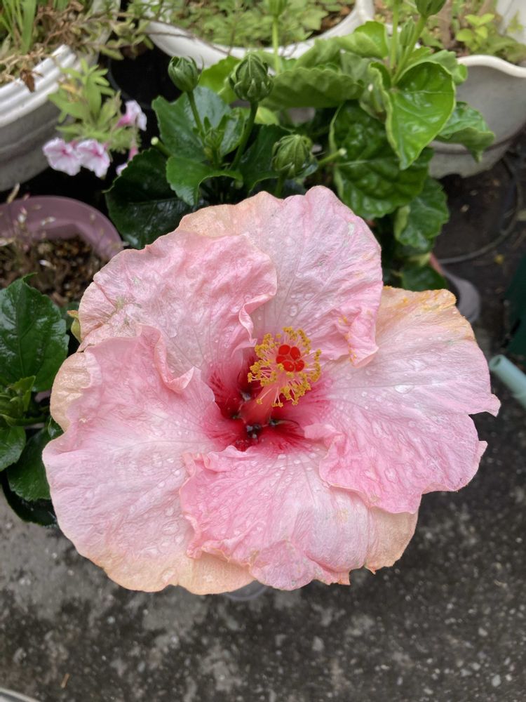 昨日 いつものお花屋さんの「本日の特売品ハイビスカス」の札にやられましたー🤣2つお迎えしました🌺💦